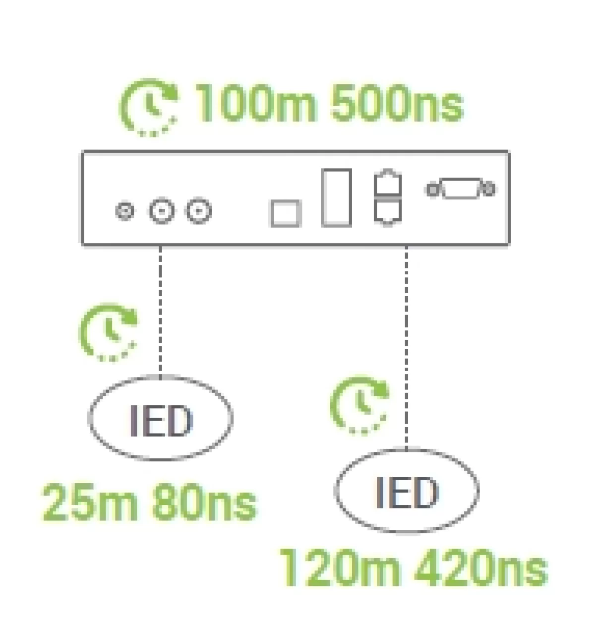 APPLICATION CASEIEEE 1588 in Power Networks: Precision Time Synchronization and Time Redundancy Two NTS8610 units in the station layer determine the Active and Backup GMC through BMCA. The Active GMC synchronizes to both GPS and GNSS satellite systems and transmits via IEC 62439-3 PRP to two power domains composed of PRP and HSR networks. According to IEC 61850-9-3 and IEEE C37.238-2017, the total end-to-end budget is 1us, with GMC being 250ns. The NTS8610 achieves superior accuracy of <40ns, reserving more budget for other devices. For early MU devices that rely on 1PPS or IRIG-B for synchronization, the NTS8610 offers 1PPS, IRIG-TTL, IRIG-B AM, IRIG-B RS-485, and RS-485 to fiber-optics by SF-63 for long-distance transmission and delay compensation. The HSR network provides zero-packet-loss redundancy but also increases latency. Devices in the process layer require more precise timing. When the end-to-end budget cannot be met, a GMC must be deployed to aid in accurate timing for critical devices. The NTS8610, certified to IEC61850-3 HV & IEEE 1613, operates reliably in harsh process layer environments, providing precise synchronization. In addition to the NTS8610, our timing solution for power substations also includes BC or TC of RHG9728 and RHG9528, P-Delay TC of EH9711, HSR Redbox, and Quadbox of RGB700X. Check our website for more detailed information on these products.